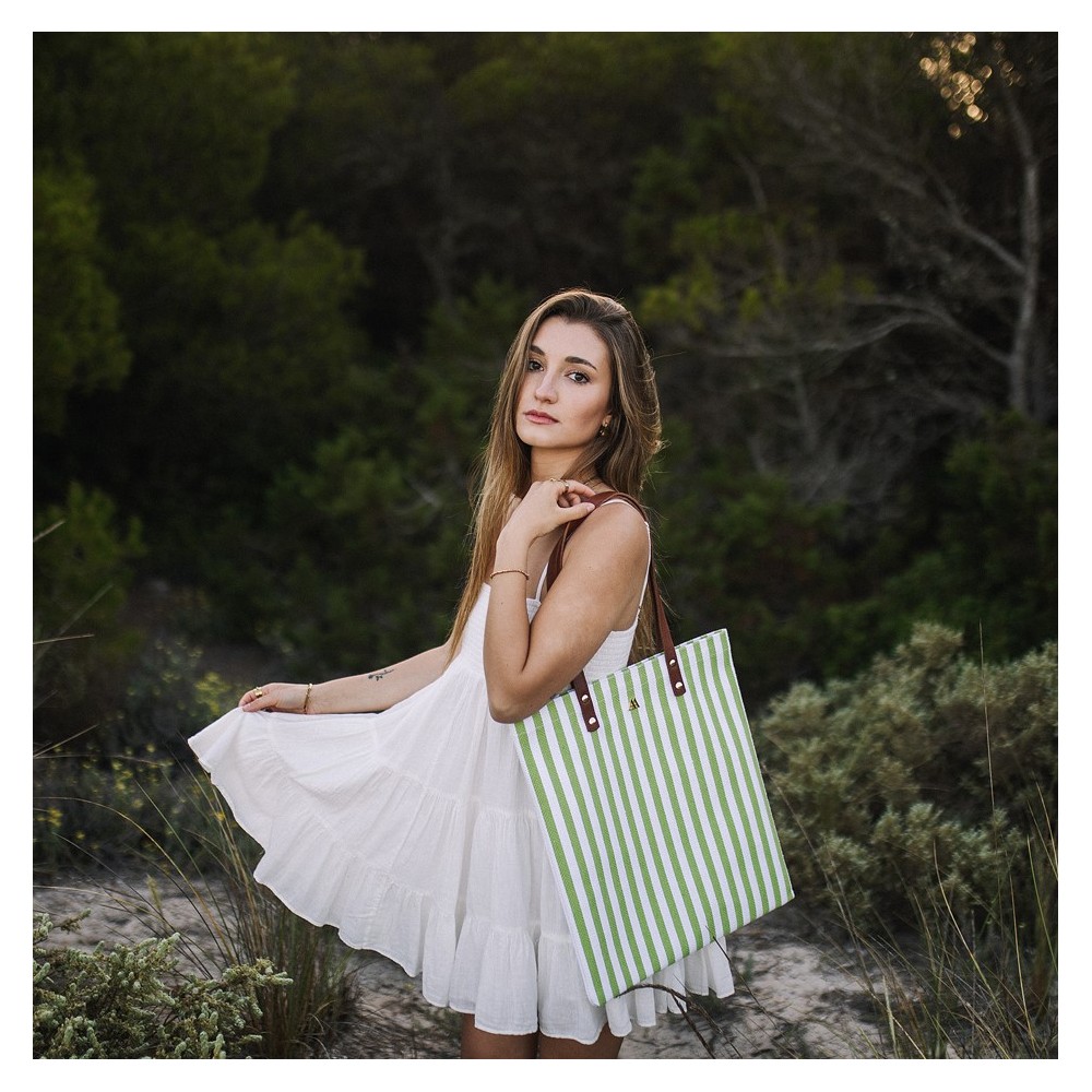 Leather handles of 70 cm by 2 cm, perfect to carry on shoulder.