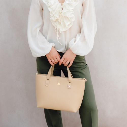 Shopper bag made of hight quality beige embossed leather