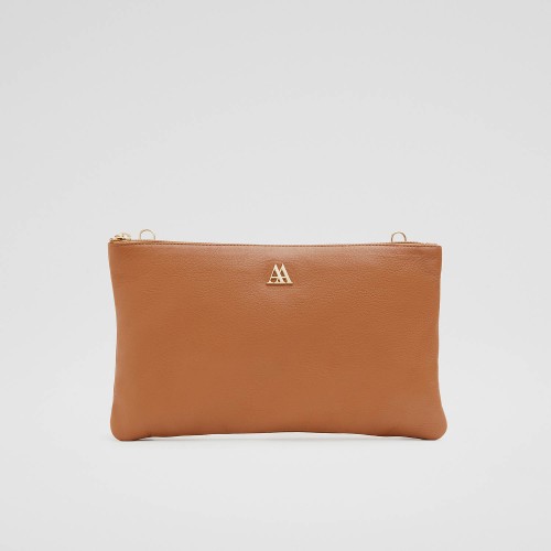 Clutch bag made of high quality leather in smooth finish, and brown colour.