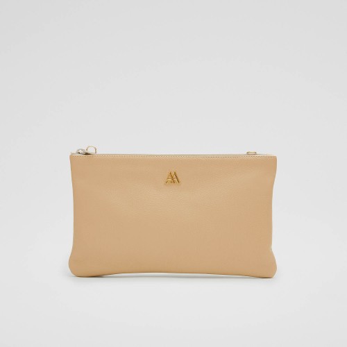 Catalina Beige Leather Clutch Handbag
