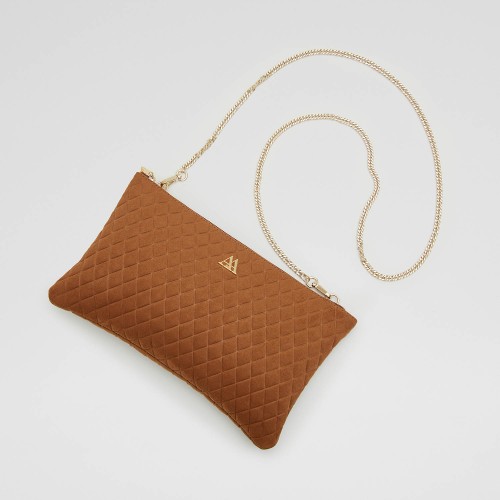 Golden chain handle of 110cm. to carry on shoulder or crossbody.