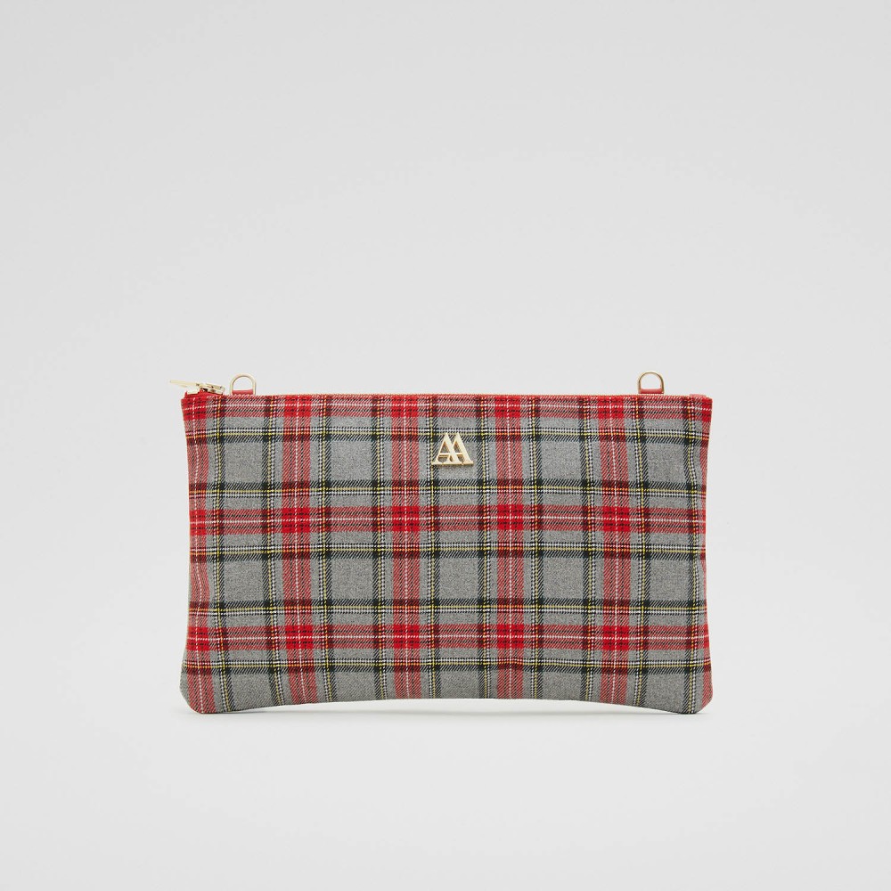 Catalina Grey and Red Plaid Woven Clutch Bag