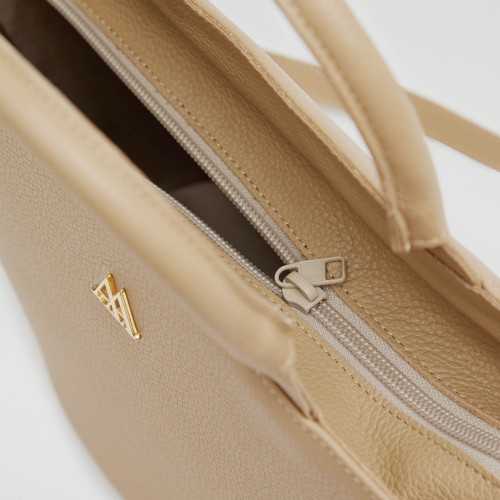 Bag in the shape of a basket made of high quality beige leather.