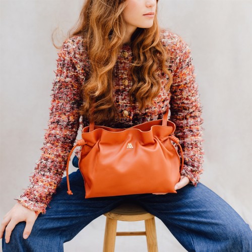 Gathered bag madeof high quality tile coloured nappa leather.