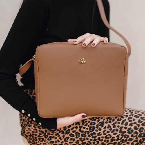 Berta bag, shoulder bag, square format, made in engraved leather, leather colour.