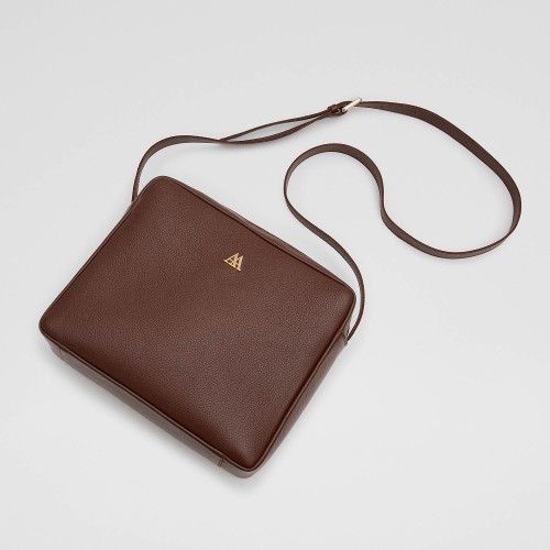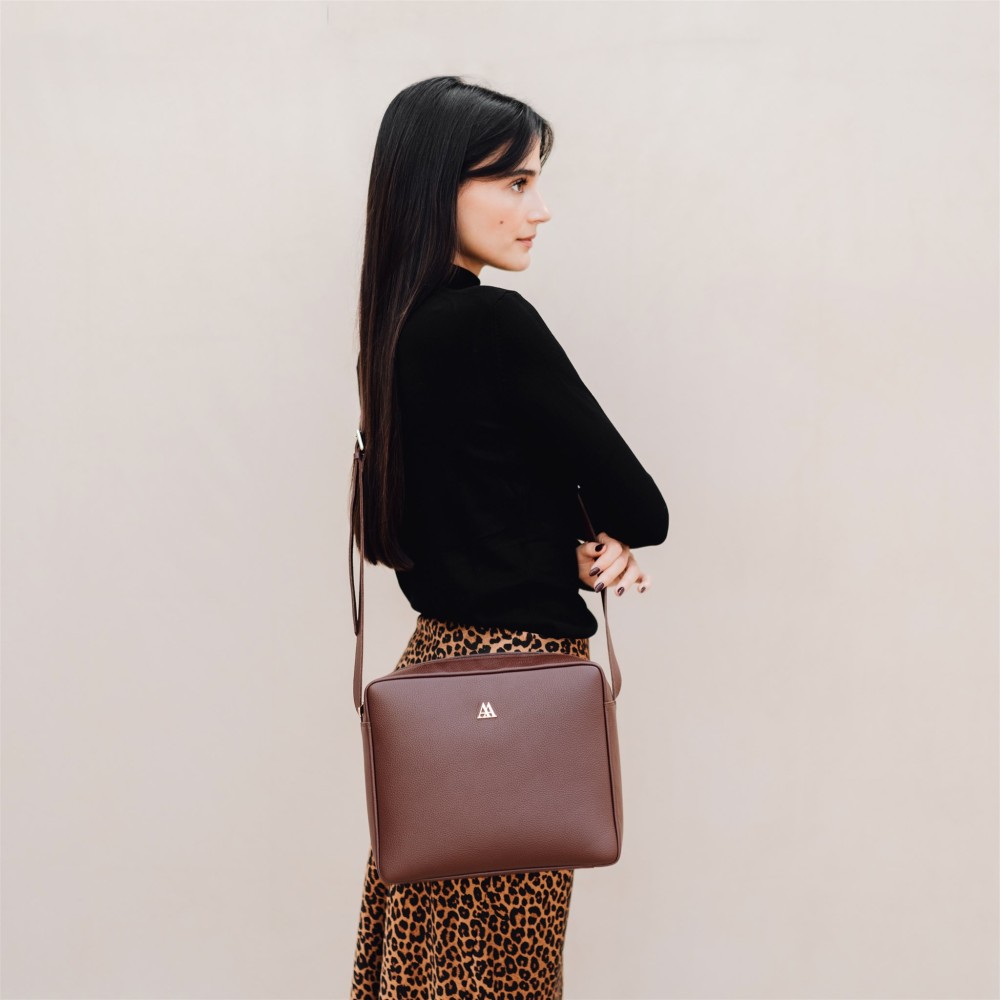 Berta bag, shoulder bag, square format, made in dark brown engraved leather.