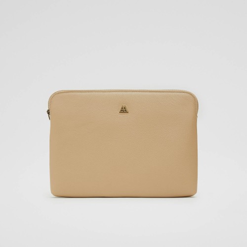 Padded device case, made in beige leather grained leather.