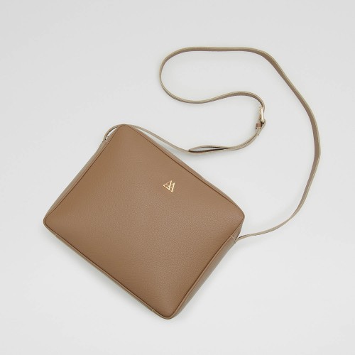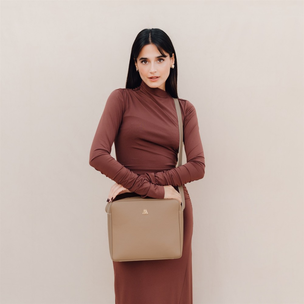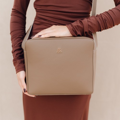 Berta bag, shoulder bag, square format, made in taupe engraved leather