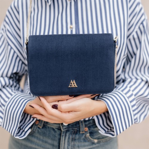Maria Mini Flap Handbag Mini Woven Corduroy Bag Navy