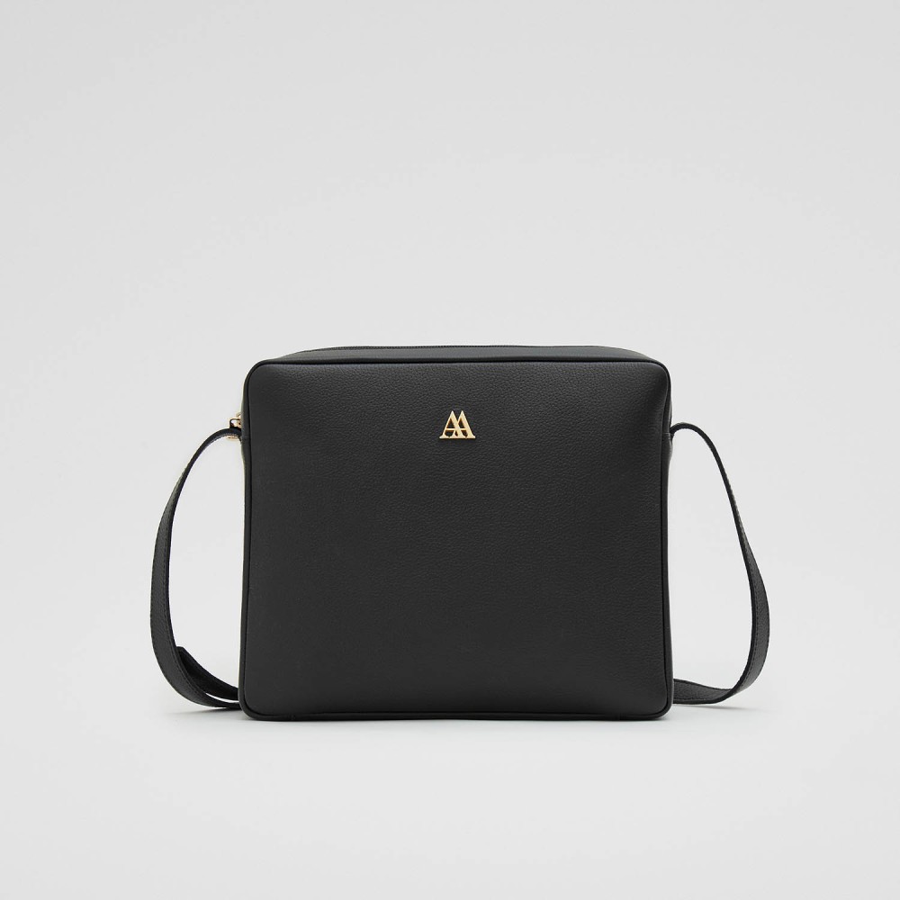Berta bag, shoulder bag, square format, made in black engraved leather.