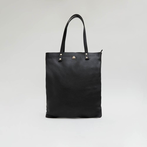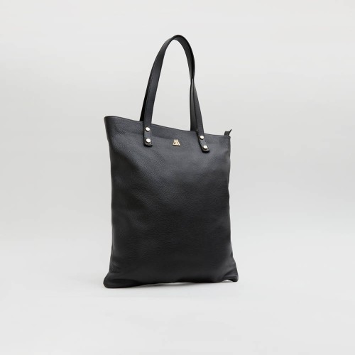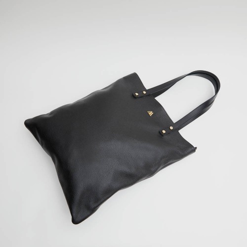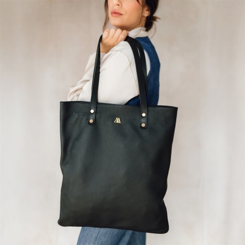 Bolso tote bag fabricado en piel color negra..