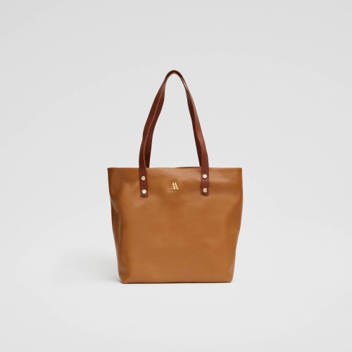 Bolso shopper fabricado en piel color marrón cuero.