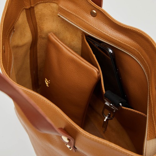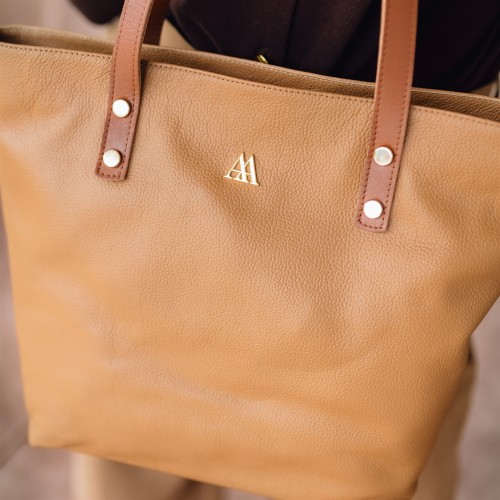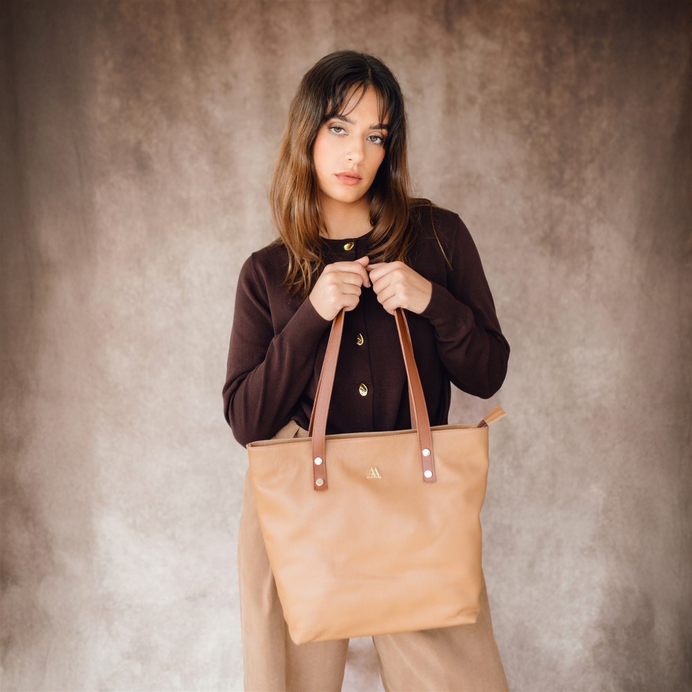 Bolso shopper fabricado en piel color marrón cuero de alta calidad.