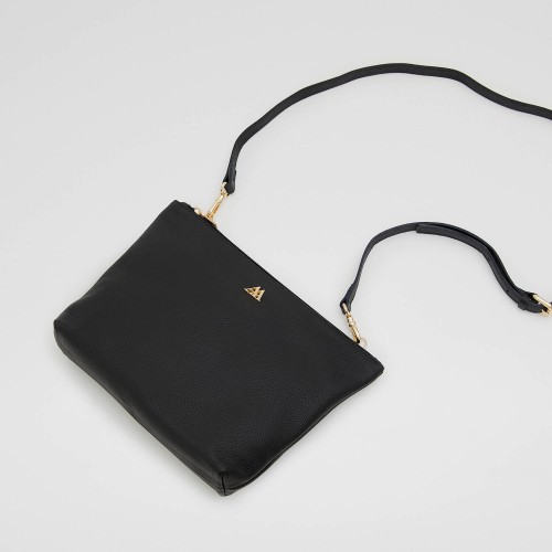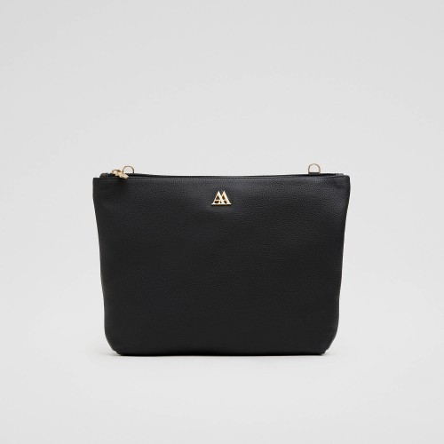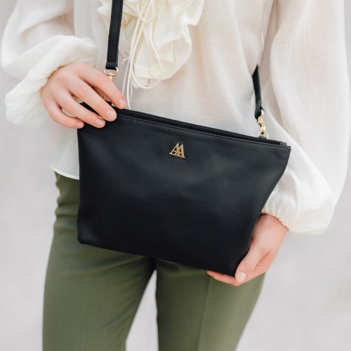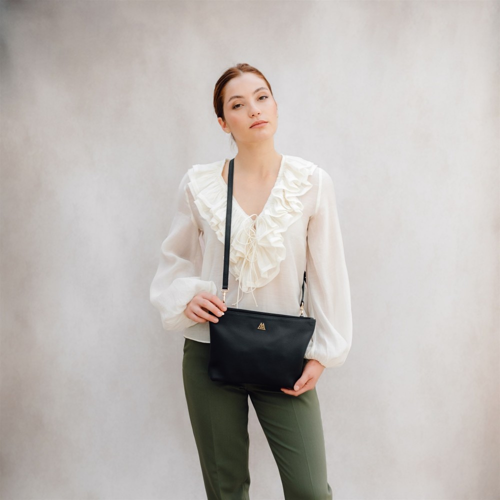 Bolso clutch fabricado en piel rugosa de alta calidad en color negro.