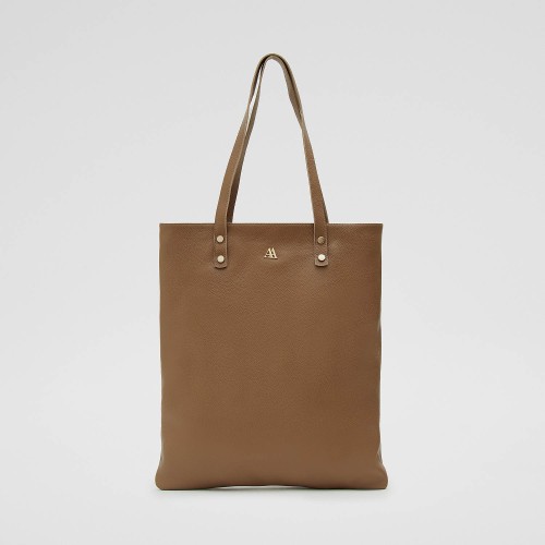 Bolso tote bag fabricado en piel color taupe.