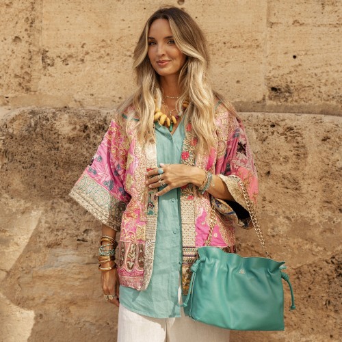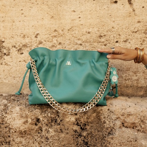 3. Fátima Bolso Fruncido Turquesa por Cris Mata