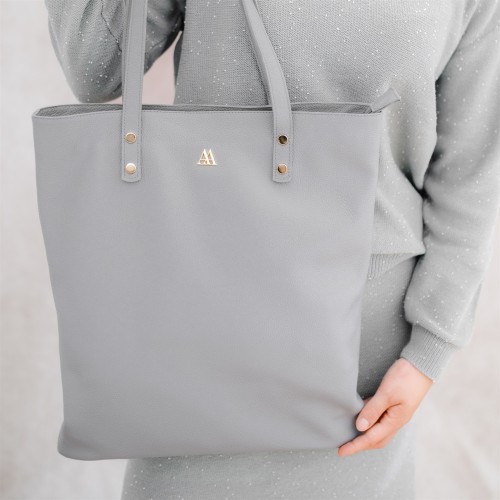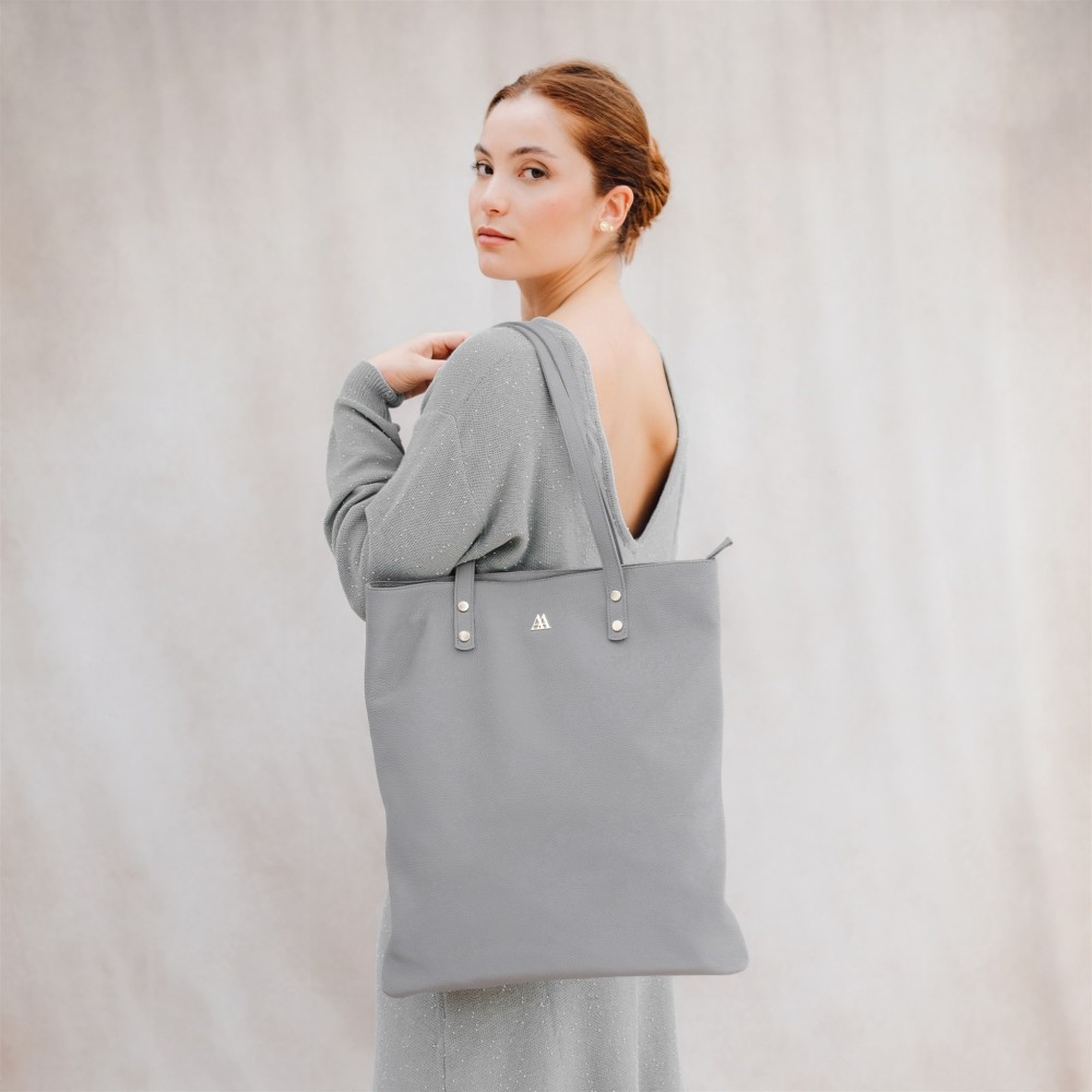 Bolso shopper fabricado en piel gris de alta calidad.