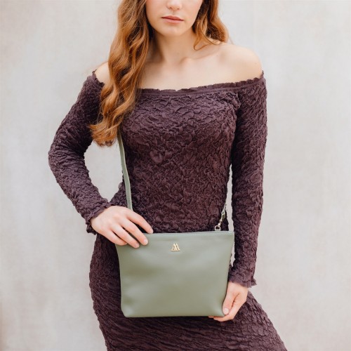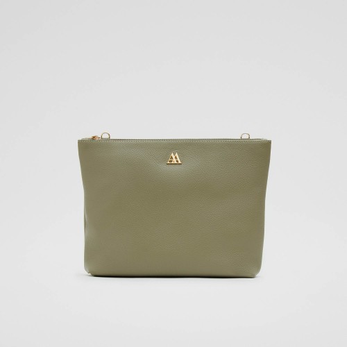 Bolso clutch fabricado en piel rugosa de alta calidad en color verde kaki.