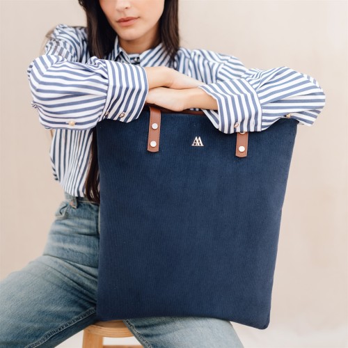 Bolso shopper fabricado con tejido pana reciclada.