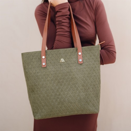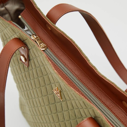 3. Simona Bolso Shopper Tejido Acolchado Verde Kaki