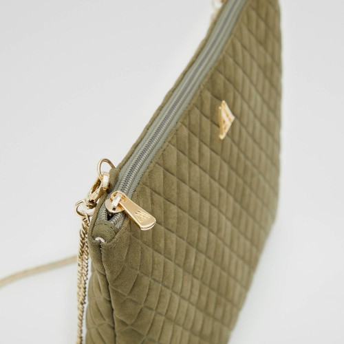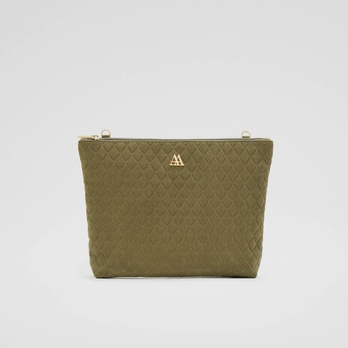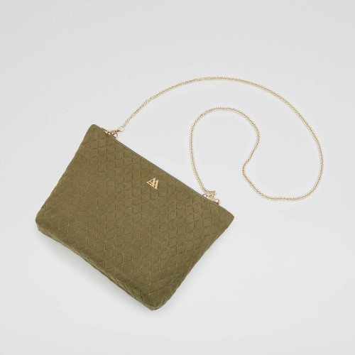 Bolso clutch fabricado con tejido acolchado reciclado.