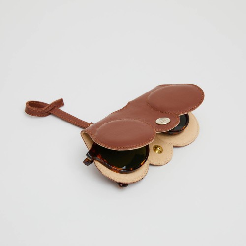 Protector de gafas fabricado en piel marrón de alta calidad.