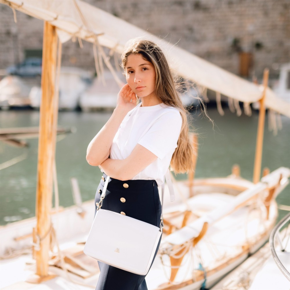 Mariela Bolso Solapa Maxi Piel Charol Blanca