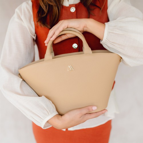 Bolso en forma de capazo fabricado en piel alta calidad color beig.