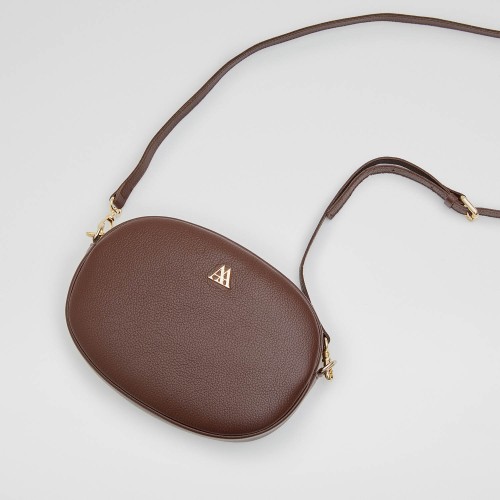 Bolso ovalado fabricado en piel de alta calidad color marrón chocolate.