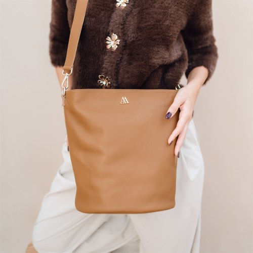 Bolso en forma de capazo fabricado en piel alta calidad color marrón.