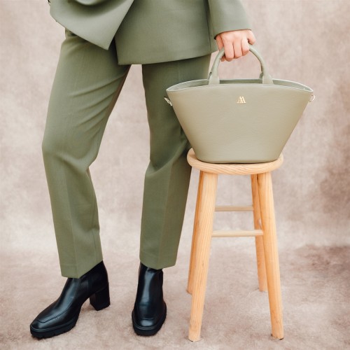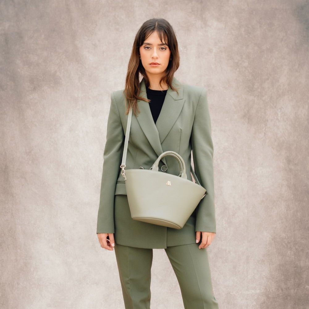 Bolso en forma de capazo fabricado en piel alta calidad color verde kaki.