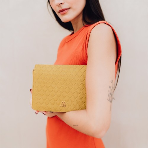 Catalina Bolso Clutch Tejido Acolchado Mostaza