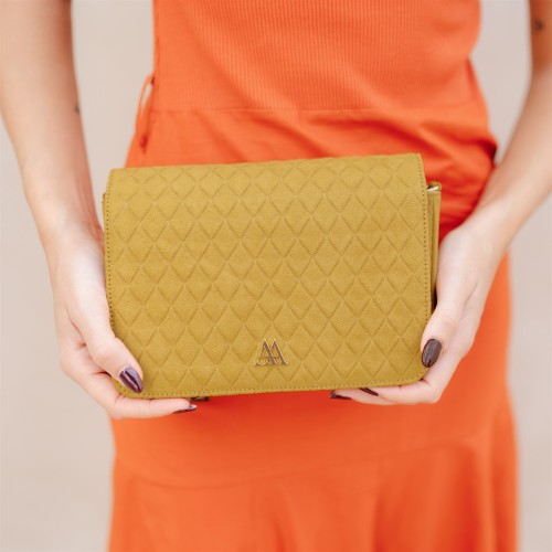 Maria Bolso Solapa Mini Tejido Acolchado Mostaza