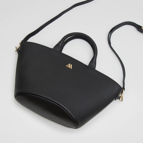 Sac en forme de nacelle en cuir noir.
