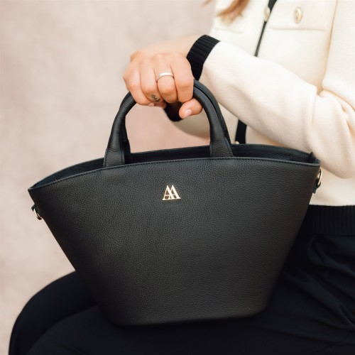 Panier en cuir nappa de haute qualité de couleur noir.