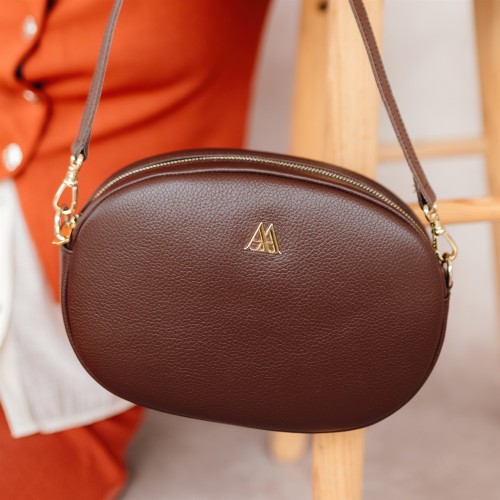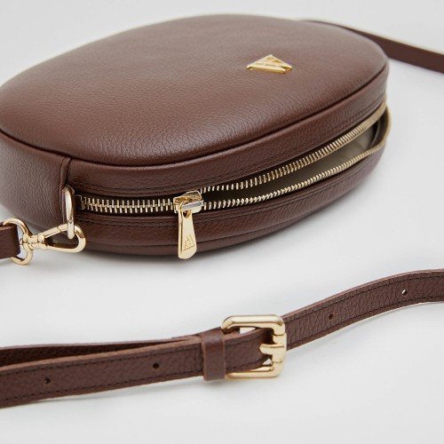 Olivia Sac à main ovale en cuir marron foncé