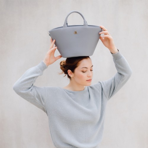 Panier en cuir nappa de haute qualité de couleur gris.