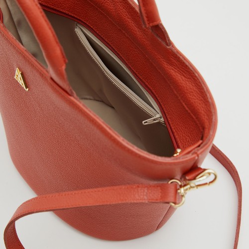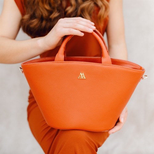 Panier en cuir nappa de haute qualité de couleur orange.