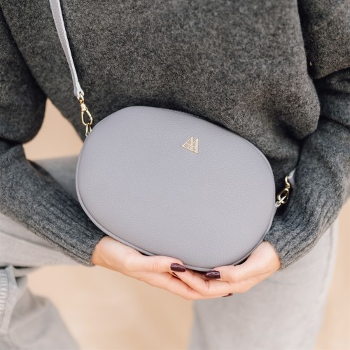 Olivia sac à main ovale en cuir gris