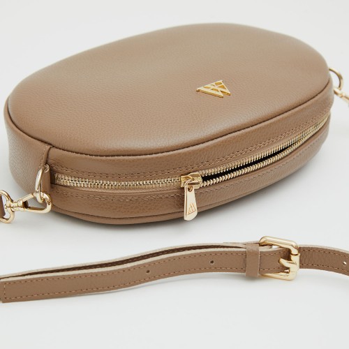 Olivia sac à main ovale en cuir taupe