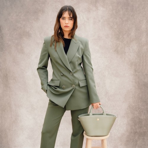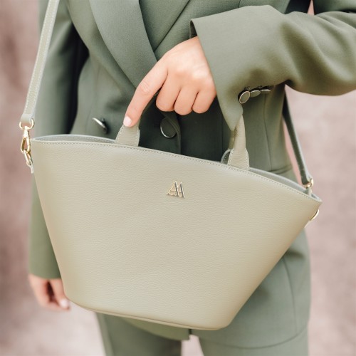 Panier en cuir nappa de haute qualité de couleur vert kaky.