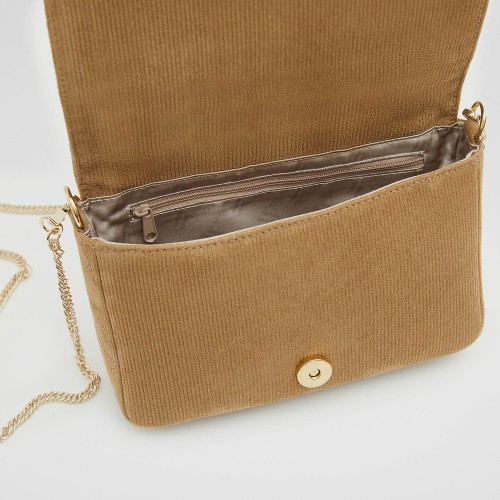 Maria Mini Sac à main à rabat sac en velours côtelé tissé marron