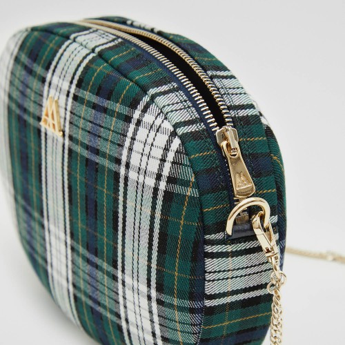 Olivia Sac à main ovale en tissu écossais vert et blanc
