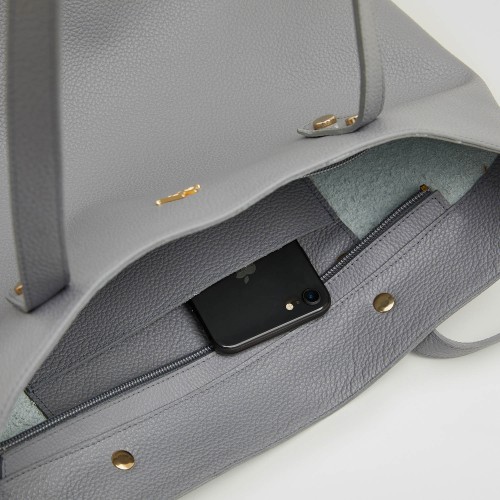 Sac shopper fabriqué en cuir gris de haute qualité.