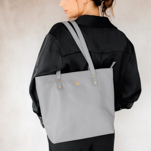 Sac shopper en cuir de haute qualité, de couleur gris.