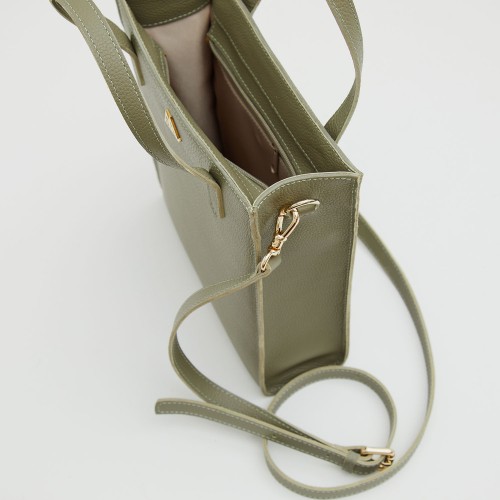 Mini sac fourre-tout en cuir fermé par une fermeture éclair.