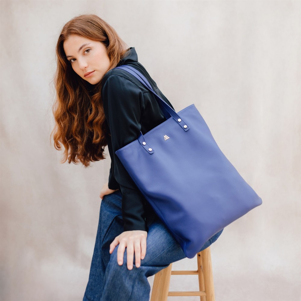 Tote bag en cuir bleu.