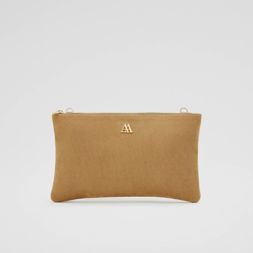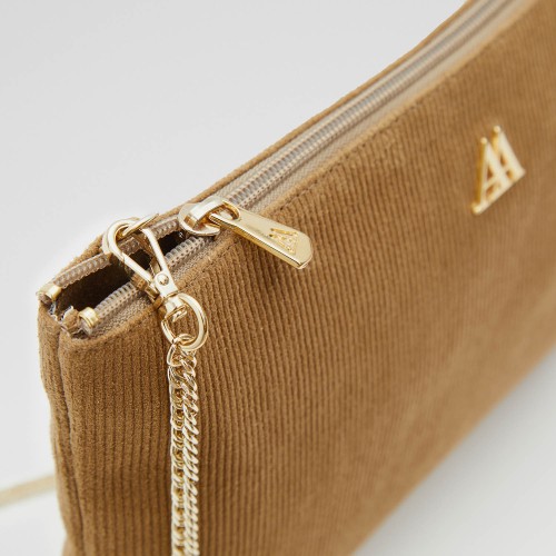 Pochette en velours côtelé recyclé marron.