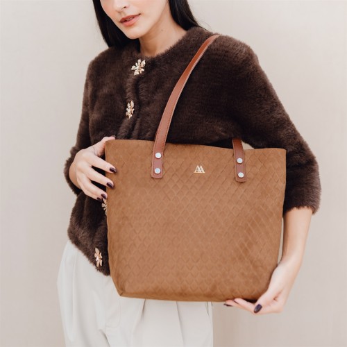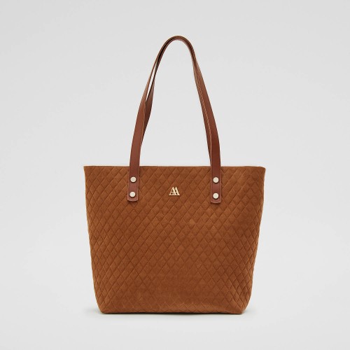 Sac shopper fabriqué  en tissu matelassé marron recyclé.