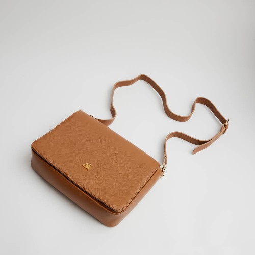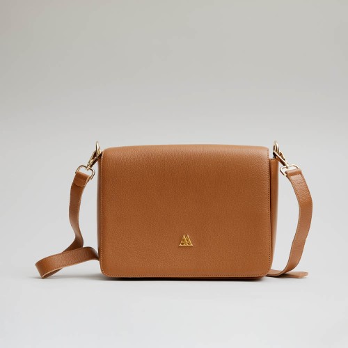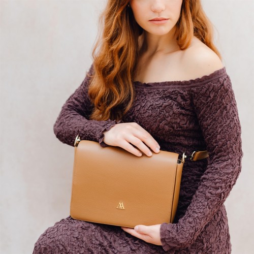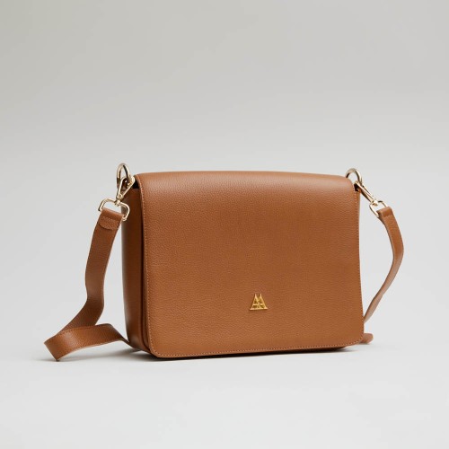 Sac à rabat en cuir de haute qualité, de couleur marron.